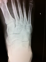 Back to the point. Last summer after snapping my 5th metatarsal for the second time in mere months I had a follow up xray six weeks out that could not have been any worse. Here's the evidence of just how bad that was. A month and a half after breaking my foot and it had actually gotten worse, not better.