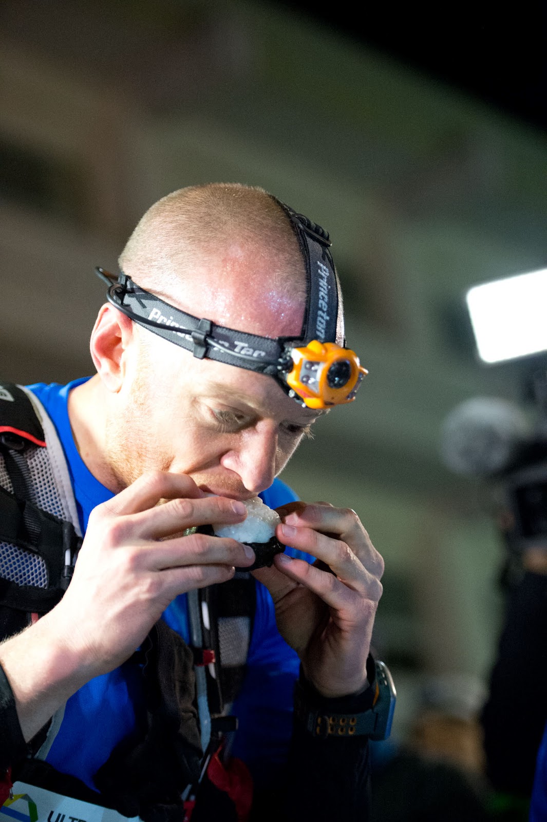 I'd been doing a decent job at staying in the optimal range of 200-300 calories an hour since the race had begun but I had been ignoring the overwhelming sense of hunger that would not subside no matter how many race food calories I injected. Looking back over my day in that moment I realized that I'd in fact eaten very little in advance of the 3pm start. It was now 7:30pm and I hadn't had much of a meal in nearly twelve hours. The mere recognition of this seemed to prompt an unsettled grumble in my belly as if it were calling for help. I had a Hammer bar in my pack so I reached back and promptly devoured it. Sure enough, some solid calories combined with the slightly slower pace and my quad cramping subsided. This small victory felt pretty huge in that moment and I high five'd myself in my mind for working my way through it.