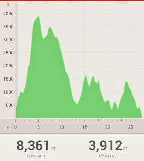 My own strategy nearly backfired though, for as we crossed the creek further down and were confronted with the steep staircase on the opposite side my quads flared in pain and started to seize. "Unbelievable" was all I could think to myself. I'm f#@king toasted. How the hell could I be cramping this early? It's not a super hot day, it's been nice for weeks and I'm as trained as I've ever been.