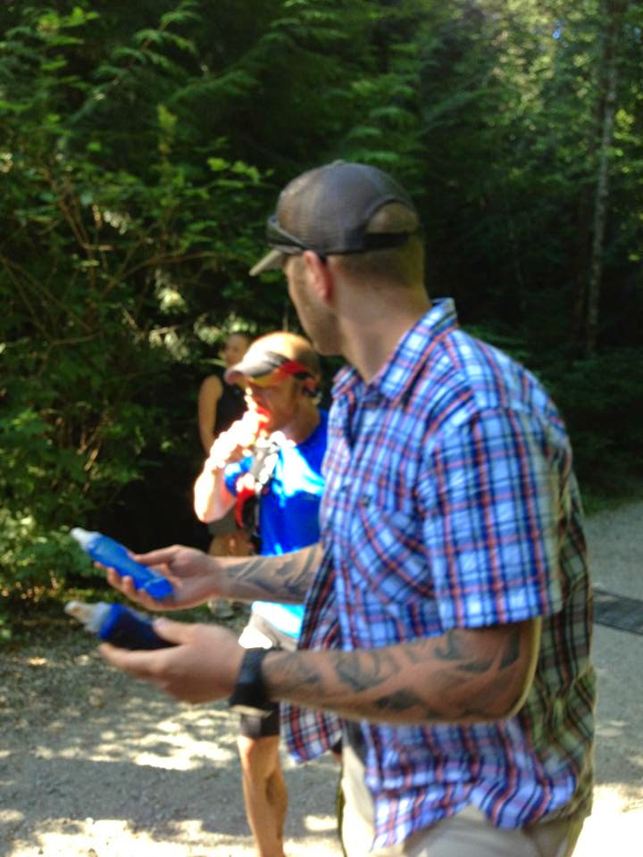 This aid station actually kinda blew my mind. I had my game plan in place which was gonna be to fill some water, down some coke and watermelon and sprint on outta there, then they said the magic words