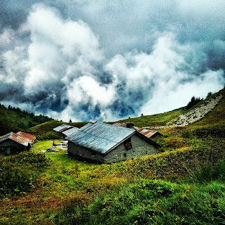 Day 5 - Finally a full night's rest. As with each night prior I'd wake up and hesitantly check my phone for the time, only today I was pleasantly surprised by the fact that I'd slept until just five minutes before my alarm would sound at 6:45am. Hopefully this allows for another good sleep tonight. I recall last year that it took the better part of seven days before my body balanced out and adopted a new rhythm. Today we drove straight through Mont Blanc via the 11km long connector tunnel to Courmayeur in Italy. The crossing costs 51 Euro so Brendan and I were looking to fill the car. It was nice have recent arrival and 2012 3rd place finisher Mike Foote join us along with friend of a friend Callum Stowell from NZ. We hit up Courmayeur for coffee before driving up the Val Ferret into Arnuva which is where the trail climbs to the highest point on the entire course, the Grand Col Ferret at 2537m / 8300ft. We sauntered but a mile uphill to gain the Refugio Elena, posed for some pics and dropped back down. It was a shocking visual reward for less than 5km of trail. Montrail runner Amy Sproston is staying right in Arnuva and we all grabbed lunch together before the guys hit the 11km stretch of tunnel back into France. All in all it was a perfect day as we had very little physical stress along with ample visual and caffeinated rewards.