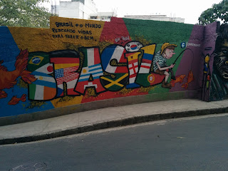 I'm guessing the most successful businesses in Brazil must sell spray paint. If it doesn't have wheels on it it's generally covered in graffiti, some artistic, some not so artistic. No area is beyond the reach of the Brazilian tagger, in fact many must posses harness and rope setups, or somehow have the innate ability to scale vertical walls while hanging one with one hand and spraying with the other. Either way to find an unpainted stretch of concrete must be like the fabled pot-o-gold at the end of the rainbow, for I saw none.
